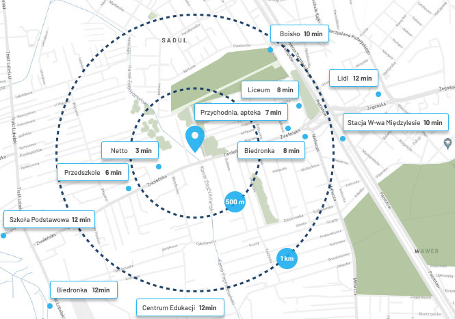 rozwijającej się dzielnicy Wawer, u zbiegu ulic Zwoleńskiej i Biegunowej. Okolica ta jest doskonale skomunikowana z centrum Warszawy – wyróżnia ją dobrze rozwinięty transport publiczny oraz drogowy. Do serca stolicy można dotrzeć samochodem, pociągiem lub autobusem w ok. 20 minut.Rozwiń ∨