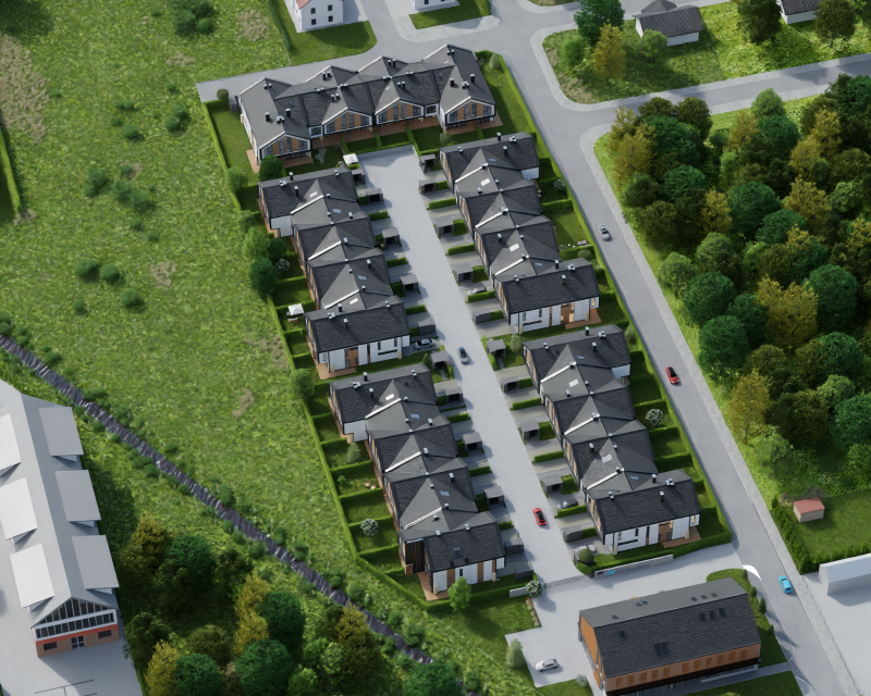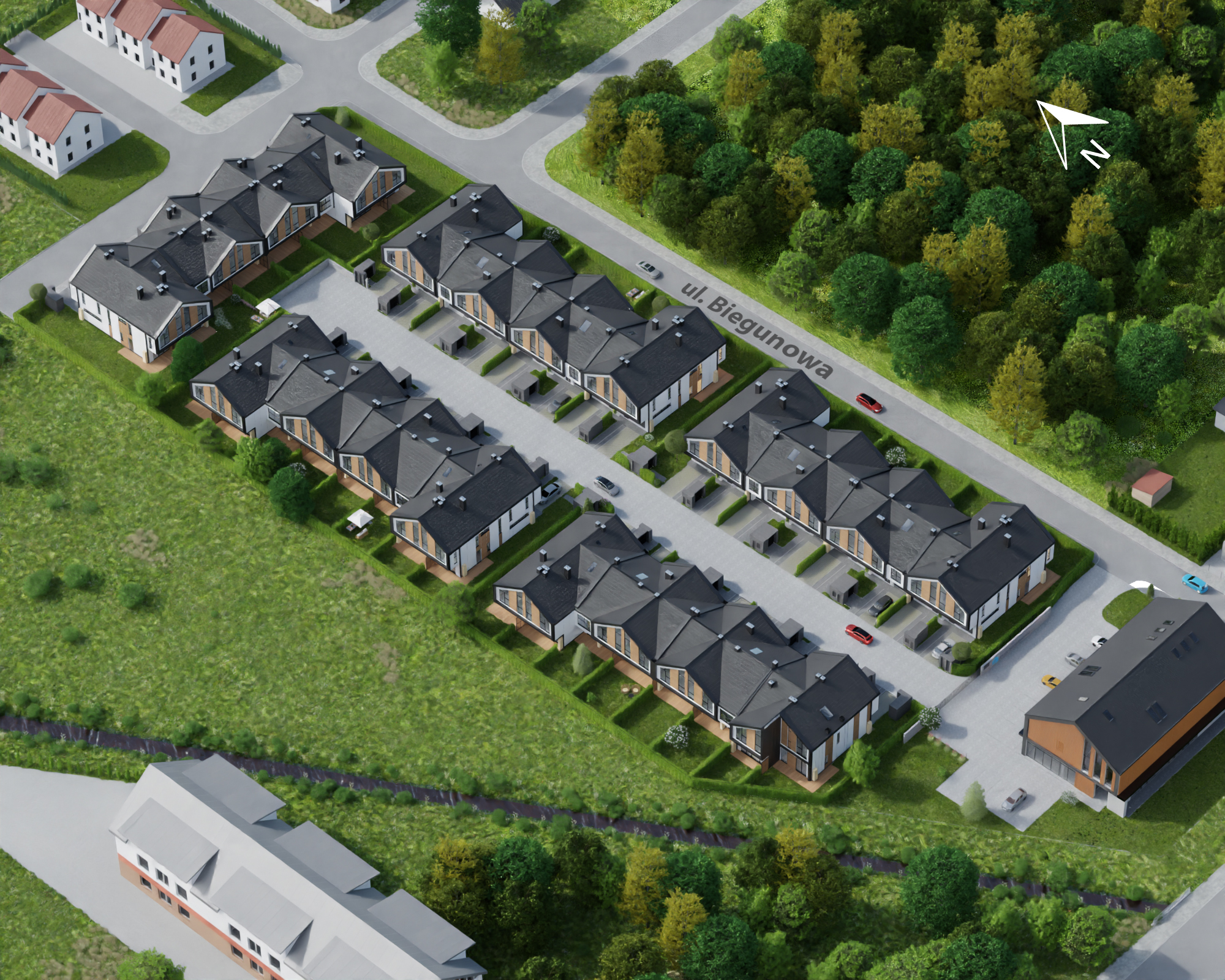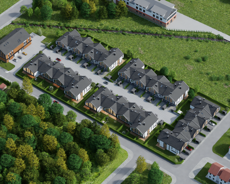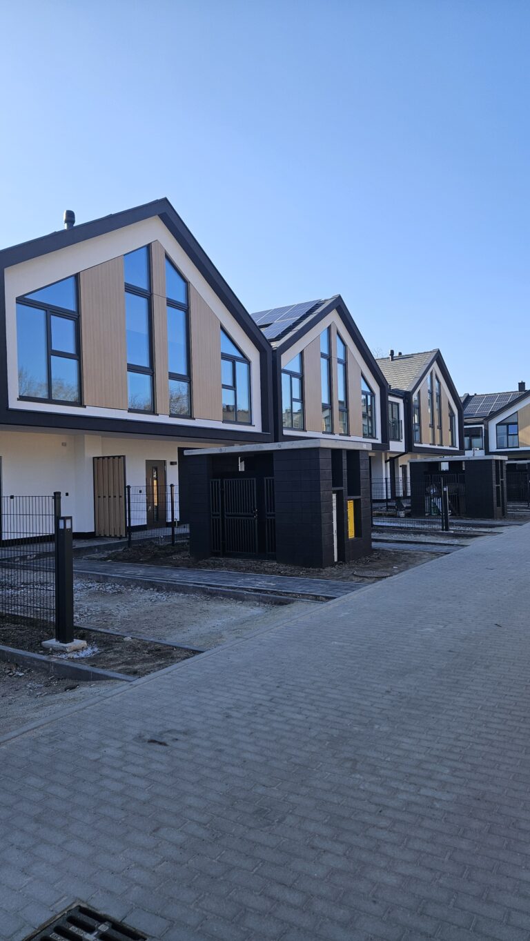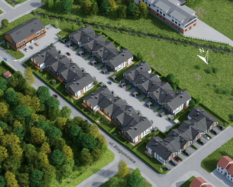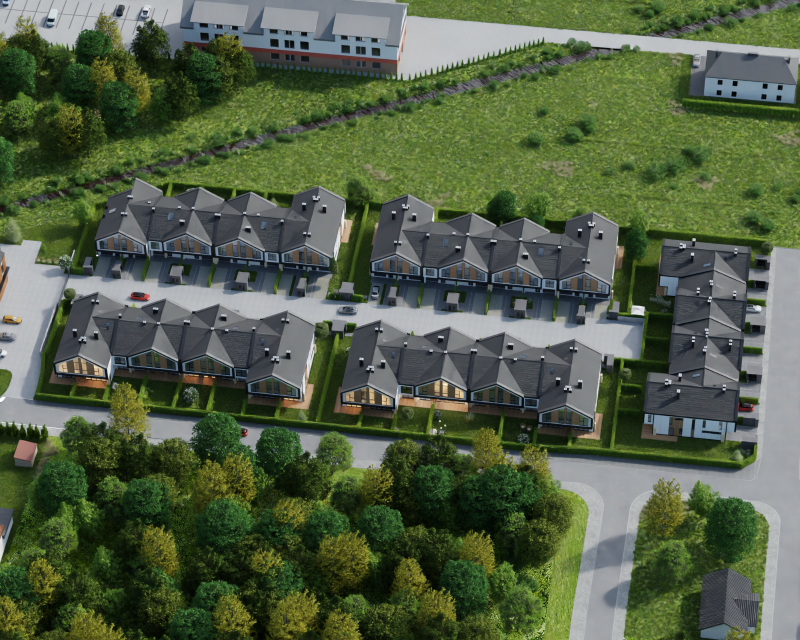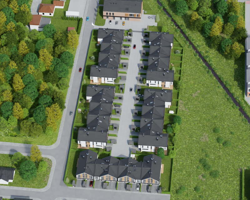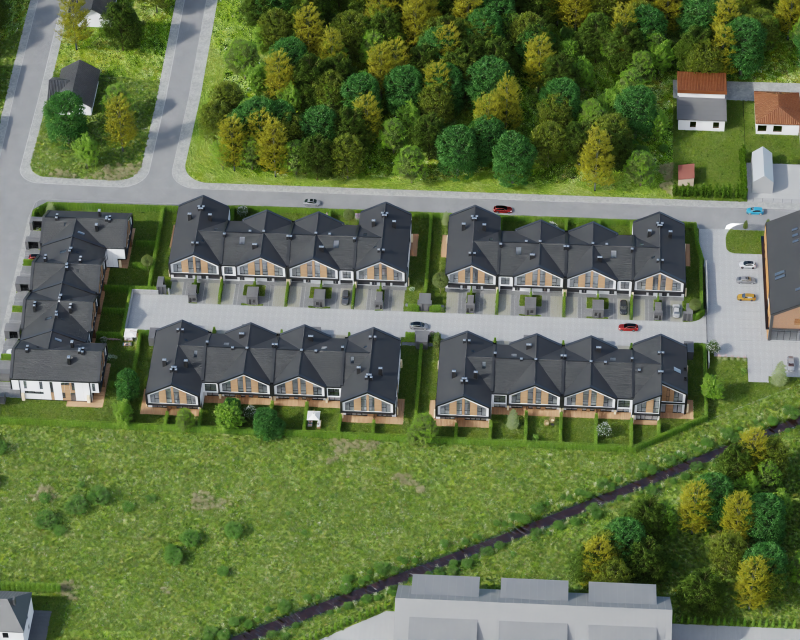 Więcej o lokalizacjiDomy mają powierzchnię od 110,23 m² do 149,26 m² i wyróżniają się bardzo funkcjonalnym układem pomieszczeń. W ich wnętrzach znajdziemy m.in.: salon z aneksem kuchennym, trzy sypialnie, dwie łazienki, WC oraz pralnię oraz liczne schowki.Rozwiń ∨